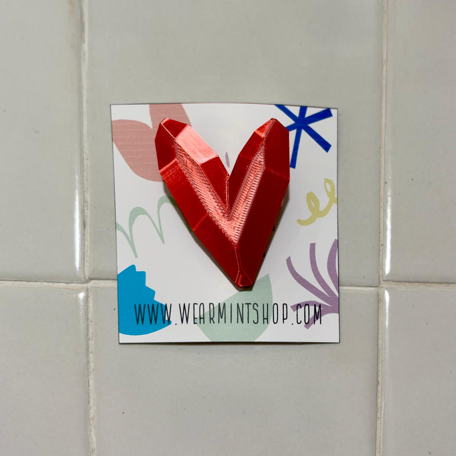 Broche de corazón 3D en un precioso color Rojo Seda con aguja y cierre de seguridad