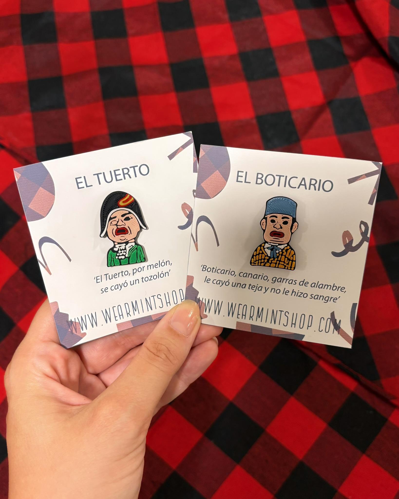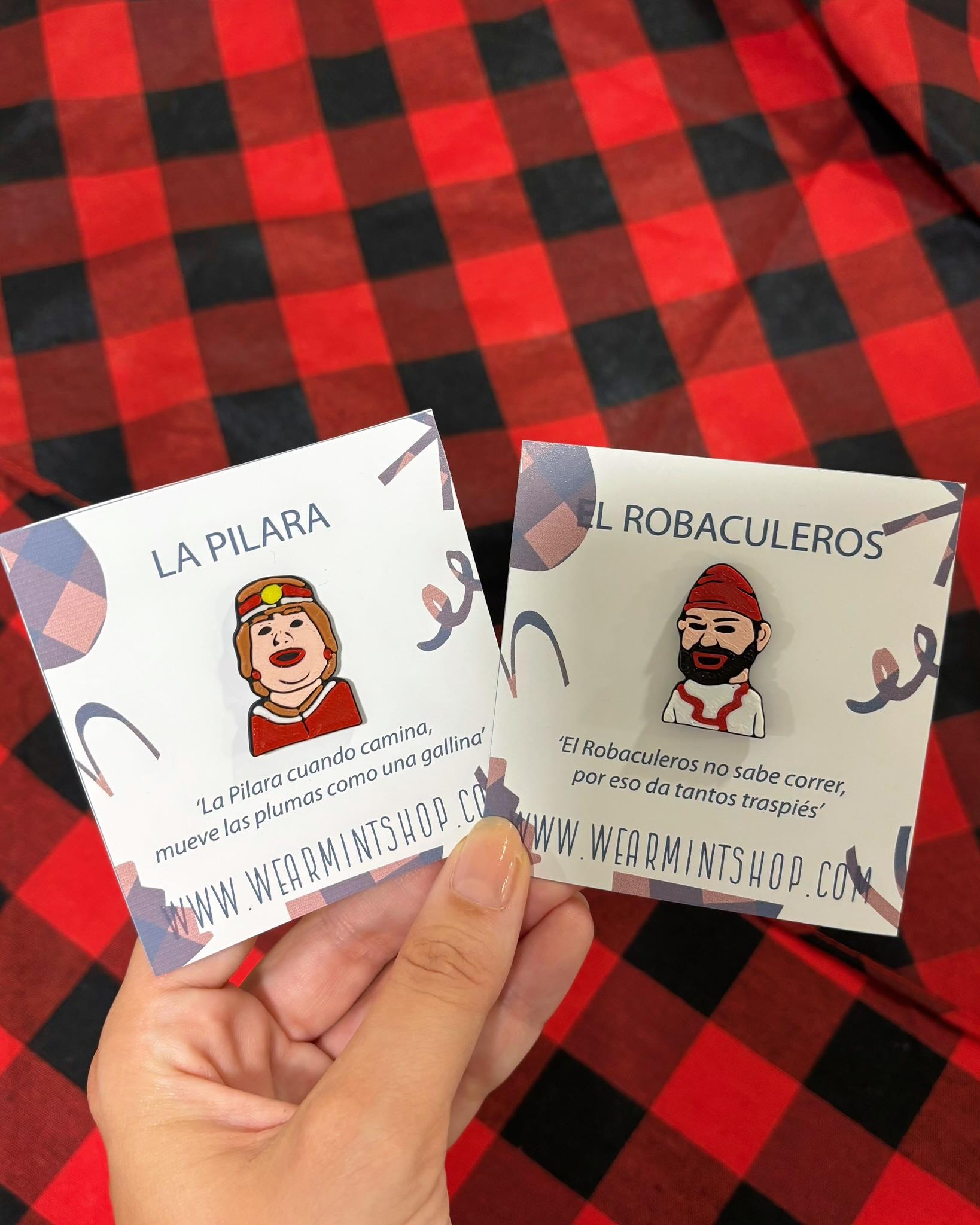 Colección completa de pines de la Comparsa de Cabezudos de las Fiestas del Pilar. Compuesta por los siguientes 11 cabezudos: